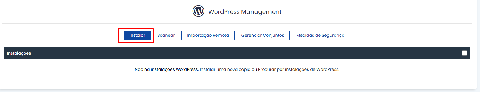 Após a conclusão, sua instalação aparecerá listada no painel do WordPress Management. Clique em Entrar para acessar o painel administrativo.